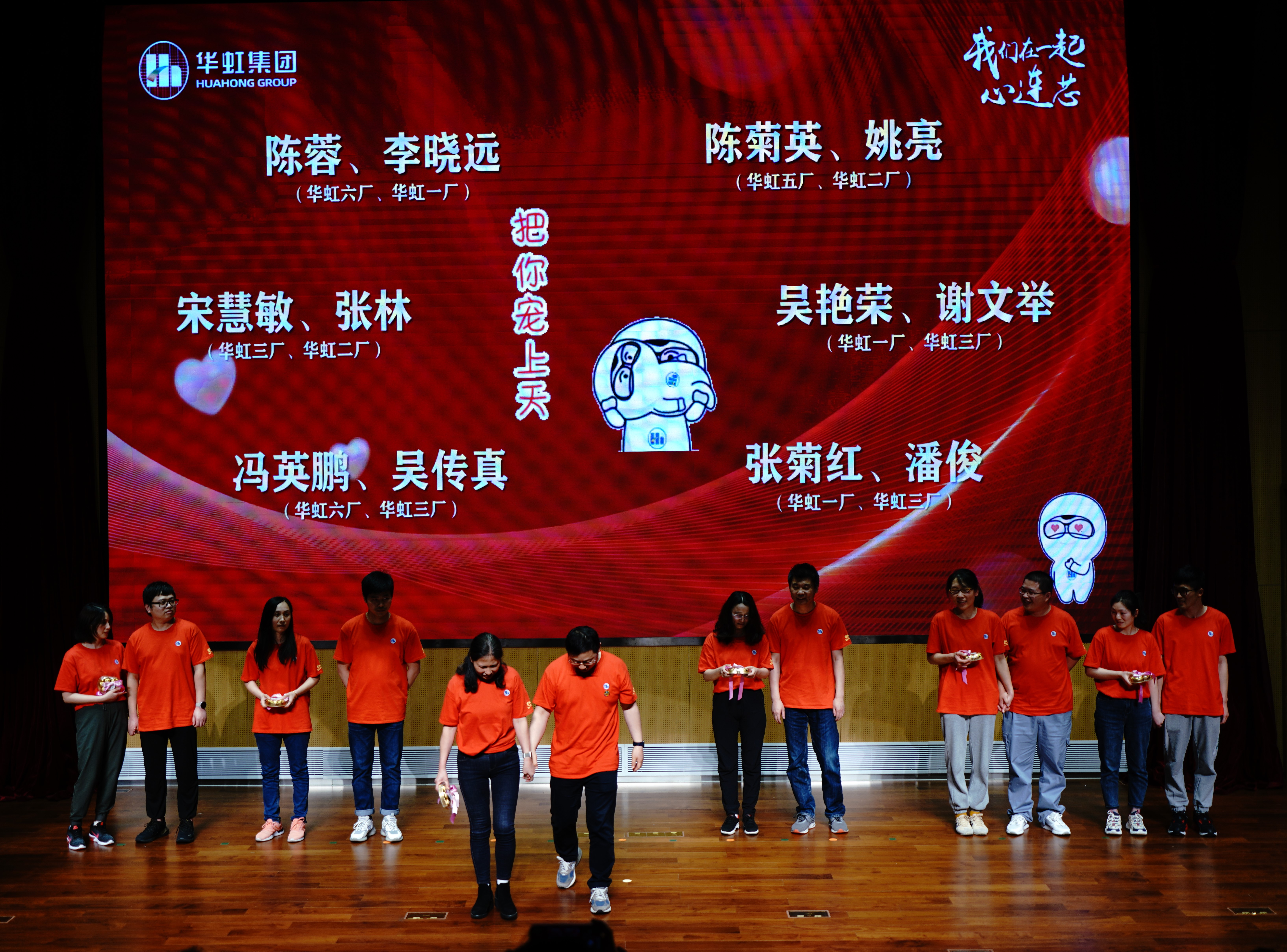 為閉環(huán)管理期間分別駐守華虹不同工廠無法相見的52對(duì)夫妻送上了祝福,并為其中6對(duì)夫妻現(xiàn)場(chǎng)安排了浪漫溫馨的見面。
